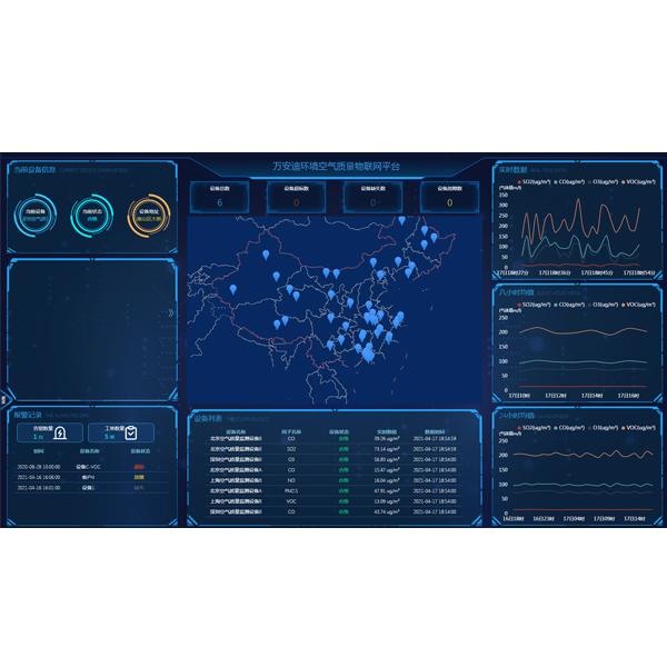 產品應用: 環境空氣質量物聯網平臺系實時采集SO2、NOx、CO、O3和PM2.5、PM10等氣體、氣象參數監測數據。可對原始數據、監控數據、站點數據、報警數據、用戶數據等進行有效整合,可全面應對環境大數據的數據挖掘及可視化展示需求,實現空氣質量大數據的快速挖掘、專業分析和靈活展示。
